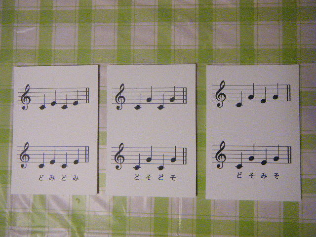 今後、このカードを、初見や譜読みの練習に、また並べ替えて作曲ごっこ等に、いろいろ使っていきたいと思います♪