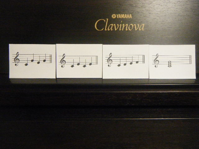 この間たくさん作った『音型カード』を、早速レッスンで使っています。