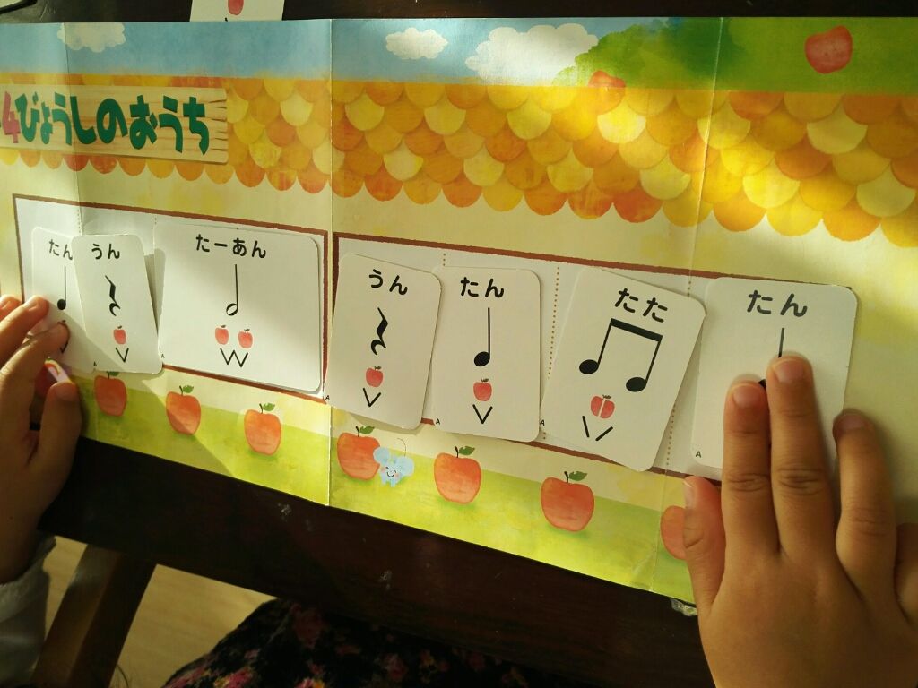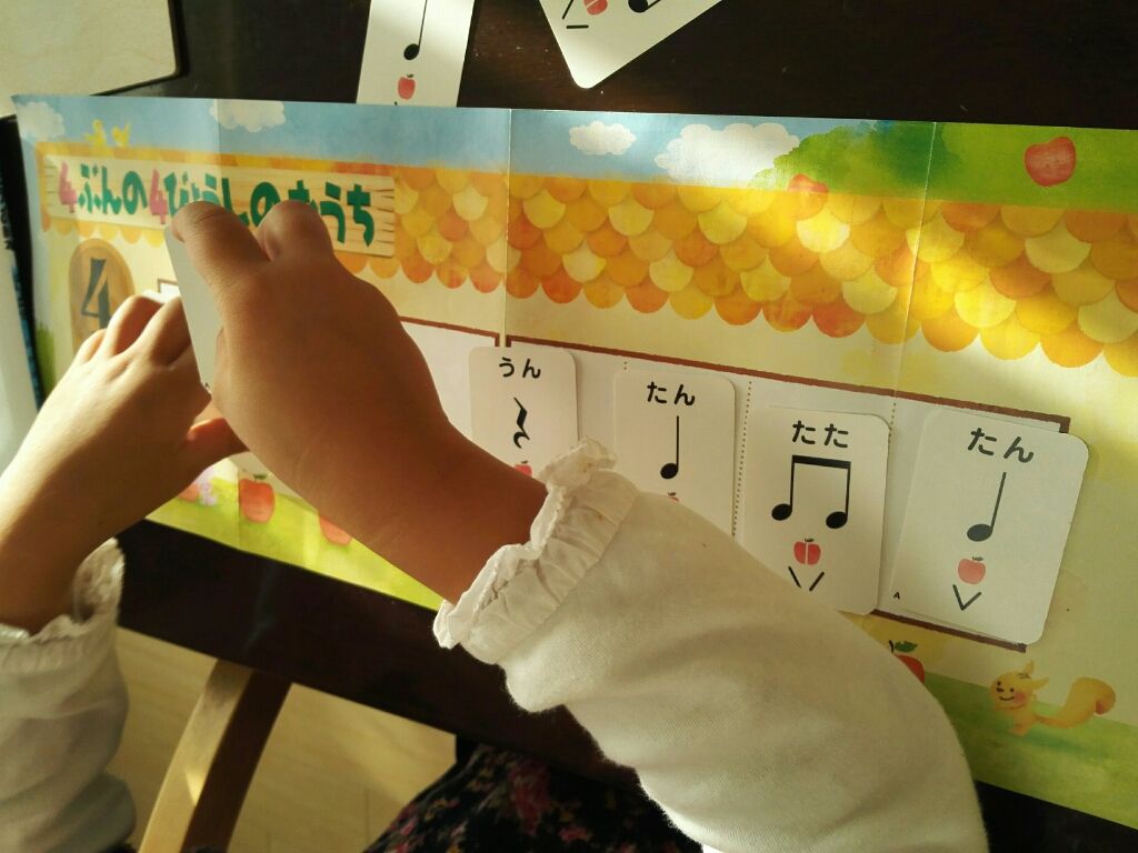 音符のカードを、入れたり出したり、場所を変えたり、いろいろやってみます。