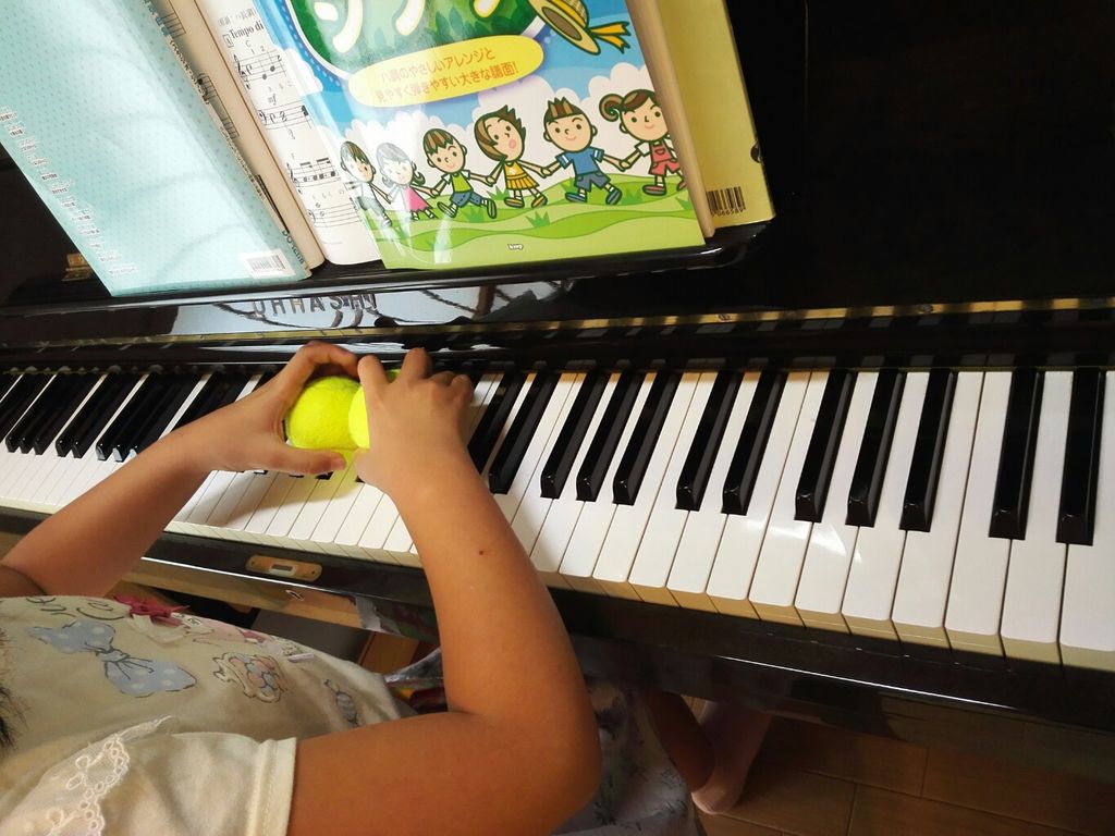 指で弾いてもいいけど、テニスボールは丁度良い大きさ、重さ、柔らかさで、小さいお子様が使っても、ボリュームのある音が出せて、楽しめると思います。