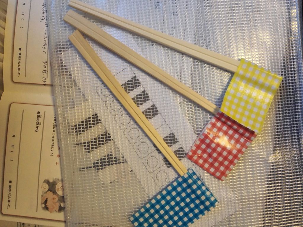 赤、青、黄色の旗を使って、音当てゲーム(o^∀^o)