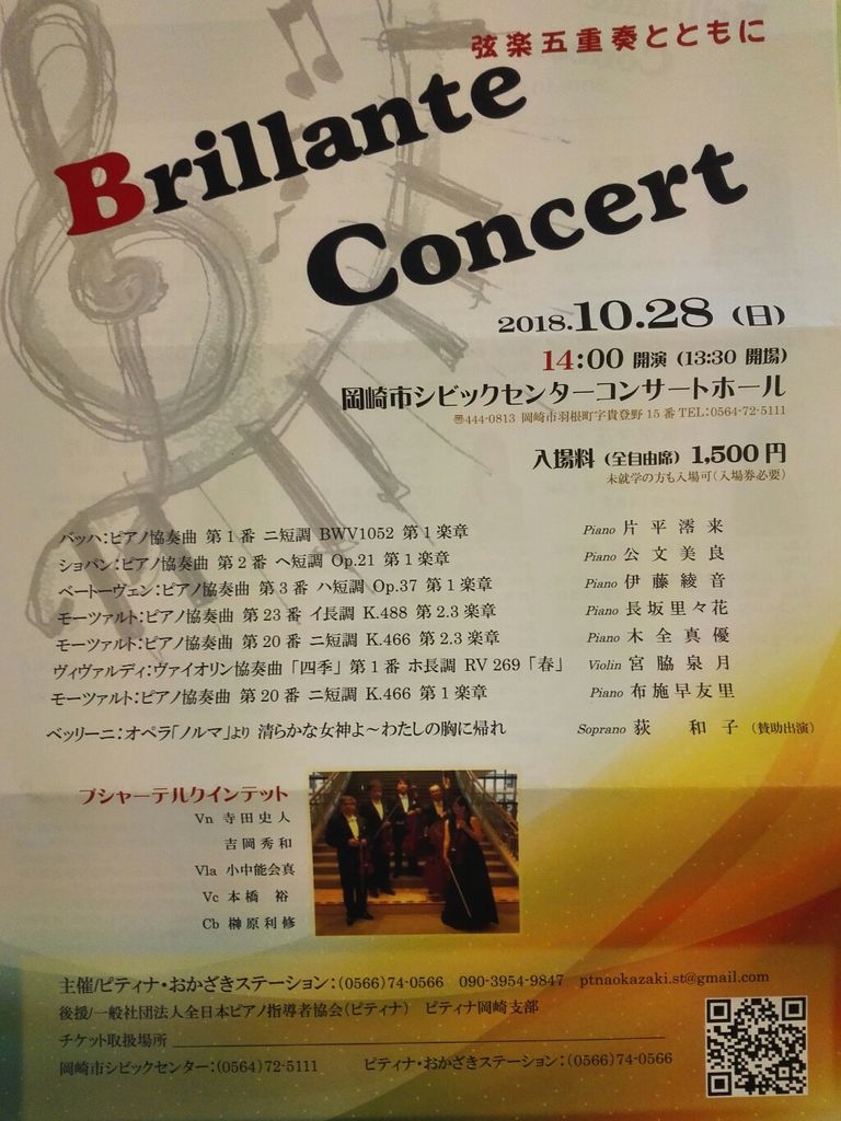 曲目は、チラシの通り、みな協奏曲ですが、オーケストラではなく、弦楽器5人(プシャーテルクインテットの皆さん)にオケパートを演奏して頂く形だそうです。