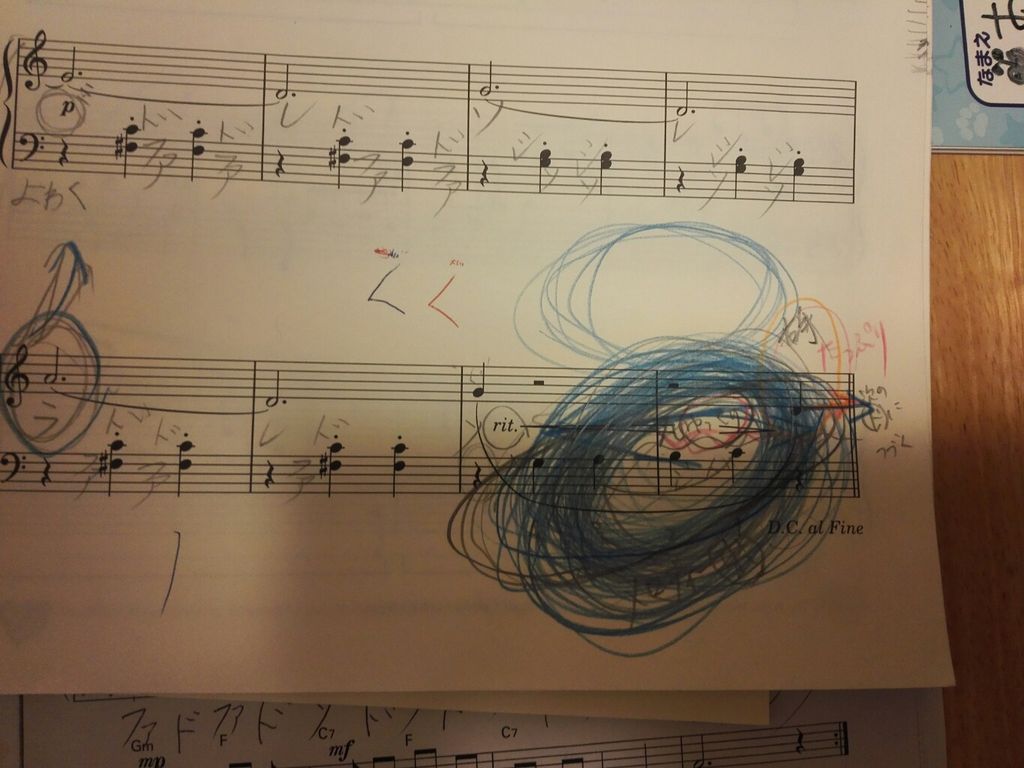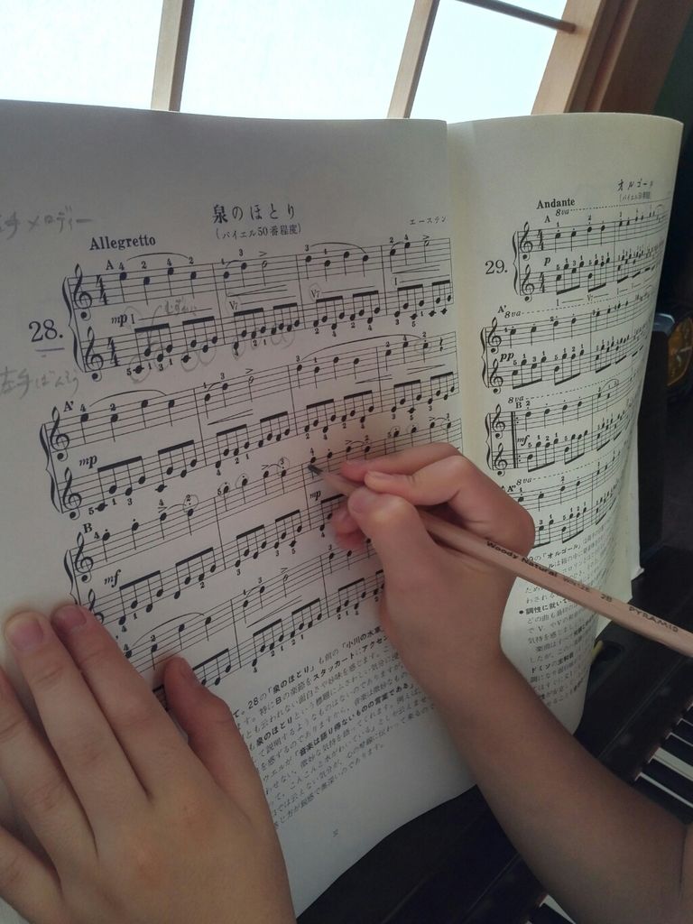 言われたことを、自分で楽譜に書き込む生徒さん。 ↑↑↑これはまた、すごい印。 グルグルグルー!と、、 ここに強い気持ちが表れていますね。 自分で書き込むことで、意識が強くなります。 言われたことを、その時に直せても、翌週、元に戻ってしまう生徒さんがあるけど、これは勿体ない!! 毎週同じことを注意しなきゃならないのは、進歩がない、、、 できれば、1度でしっかり自覚して直して欲しい。 そこで、自分で注意点を書き込んで貰うようにしてますが、効果ありです。 (。•̀ᴗ-)و ̑̑✧
